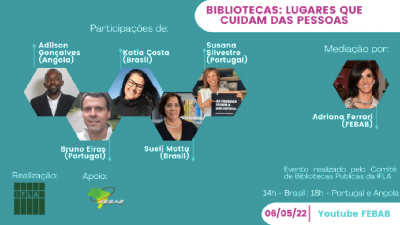 Para encontrar as respostas que as comunidades necessitam no momento, a Seção de Bibliotecas Públicas da IFLA organizou o webinar “Bibliotecas: lugares que cuidam das pessoas”, a ser realizado no dia 6 de maio, às 14h. O evento traz experiências realizadas em bibliotecas voltadas para pessoas em situação de vulnerabilidade no Brasil, Portugal e Angola.