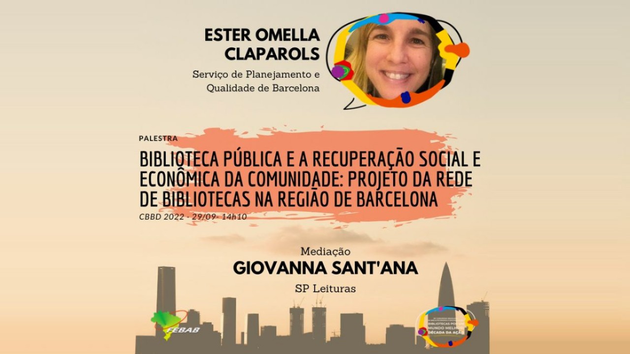 Crédito: Divulgação A troca de experiências e o conhecimento de outras realidades sempre possibilitam encontrar novos caminhos e soluções para problemas diversos. Esse é o intuito da palestra Biblioteca Pública e a Recuperação Social e Econômica da Comunidade: Projeto da Rede de Bibliotecas na Região de Barcelona, ministrada por Ester Omella Claparols, do Serviço de Planejamento e Qualidade de Barcelona. A apresentação acontece no dia 29 de setembro, a partir das 14h10, e será mediada pela gerente de Programas e Projetos da SP Leituras, Giovanna Sant’Ana.
